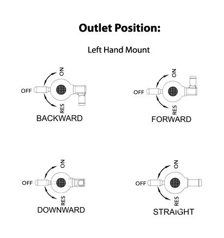 Note: The Type is in reference to the direction that the outlet is pointing if the petcock is on the left side of the gas tank and you are looking straight at it. Please see the last photo for further illustration of these option types.
